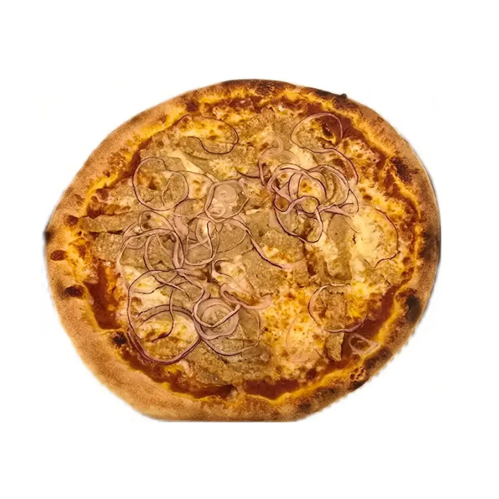 Tomato sauce, mozzarella, tuna, onions, oregano