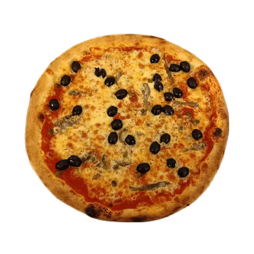Tomatensauce, Mozzarella, Sardellen, Kapern, Oliven, Oregano