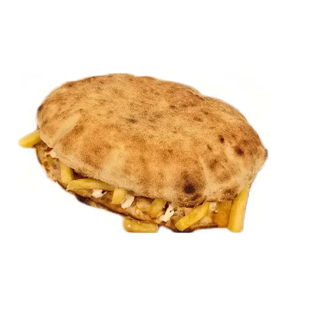 Zubereitet mit Pouletschnitzel, Peperoncini, Zwiebeln, Salat und Sauce Samurai